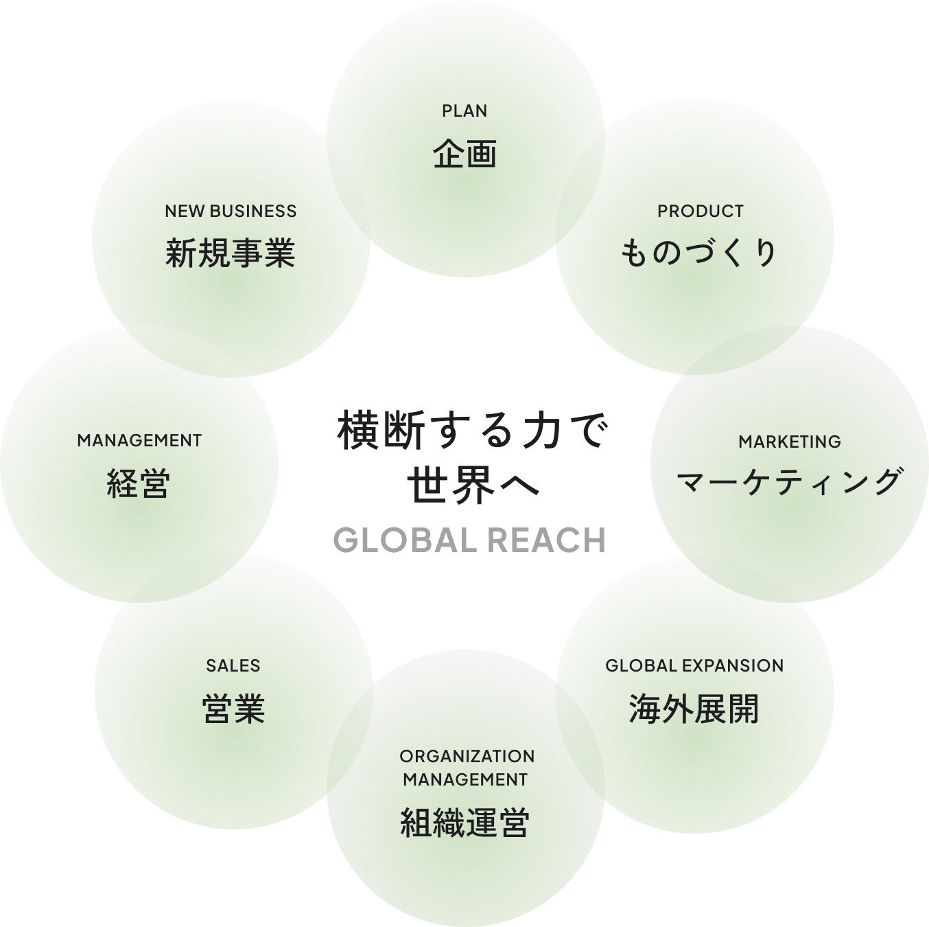 企画から開発、販売、マーケティング、海外展開、経営、組織運営、新規事業まで。